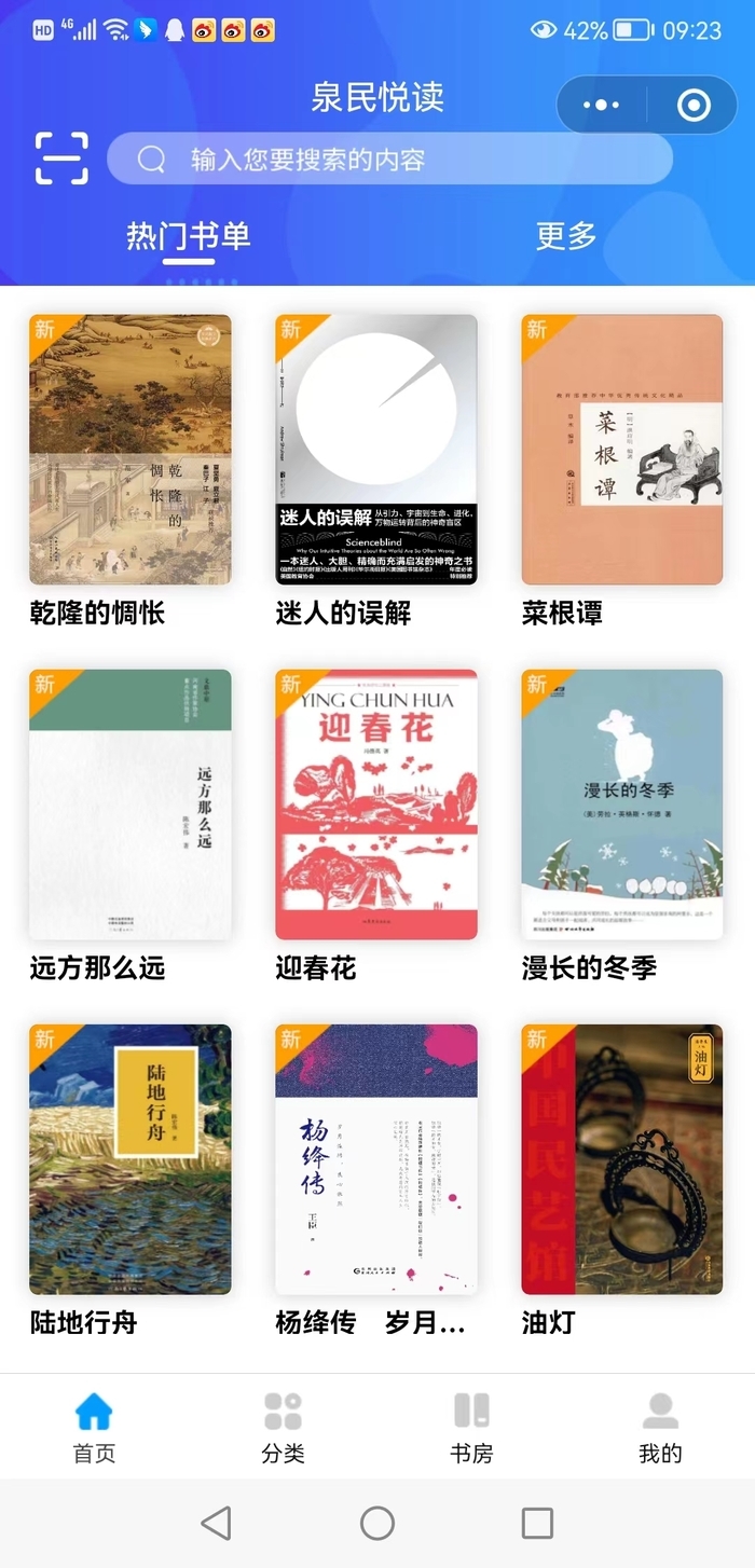 泉民悦“读”小程序是济南市文化和旅游局主办、济南市图书馆具体承办推出的免费公益电子书阅读项目。市民无需注册,可直接通过微信扫码登录“泉民悦读”小程序,即可免费畅读市图精选年度书单(24册)以及13000余册优质电子图书。“泉民悦读”小程序采取零门槛、零注册、有奖阅读等方式向市民提供免费数字阅读服务,无论你在城市的哪个角落,都能随时随地“云上畅读”。