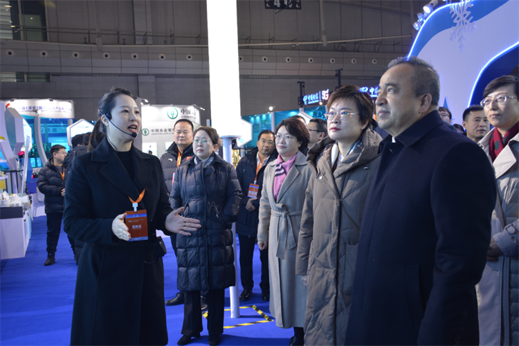 巡馆期间,金晖副省长陪同新疆自治区政府主席艾尔肯艾尔肯·吐尼亚孜在河北展馆参观