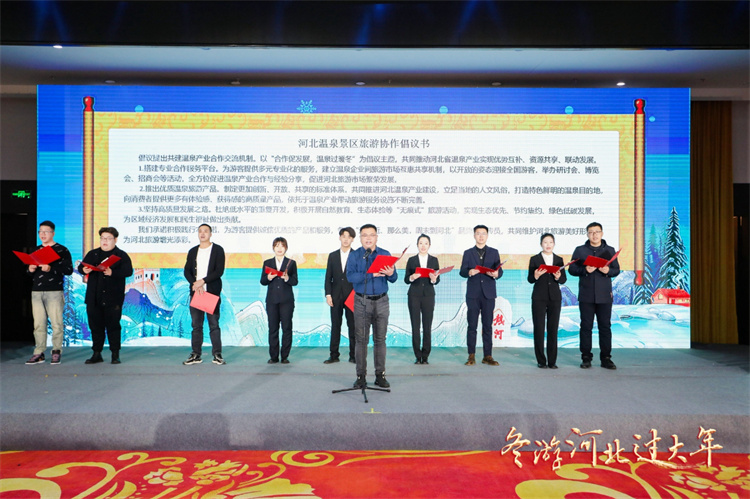 河北省内主要温泉旅游企业现场发起景区品质服务倡议,倡议以“合作促发展,温泉过暖冬”为主题,在搭建专业合作服务平台,为游客提供多元专业化的服务;推出优质温泉旅游产品,打造特色鲜明的温泉目的地;坚持高质量发展之路,积极开展自然教育、生态体验等“无痕式”旅游活动三个方面提出了新的发展方向,共同推动河北省温泉产业实现优势互补、资源共享、联动发展。此外,河北影视集团为隆化县颁发影视基地牌匾并签约,携程集团与隆化县、热河谷温泉度假区和北京天沐荟酒店进行签约,北京、天津、河北旅行社代表进行签约。