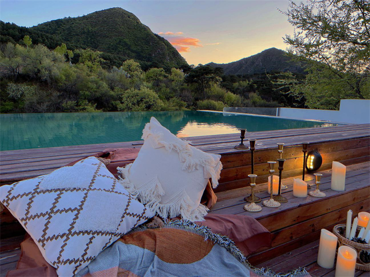 叁时壹宿,一个将承德传统村落文化与丹霞地貌结合形成的富有文化气息的特色小院。坐落于承德市双桥区大石庙镇双庙村,是一家通过利用村民闲置民房,依托周边自然资源、文化资源打造的高端精品民宿。无边泳池、露天影院、开放式共享餐厅、亲子活动、农场、露营、主题派对,让人乐此不疲。不定期举办种植、手工、插花、烘焙、扎染、茶艺等活动,让宾客亲身体验传统文化之美,了解更多风土人情。让每一位来到这里的客人,都能感受到“云开时见山、林深时见鹿、梦醒时见你”的意境。