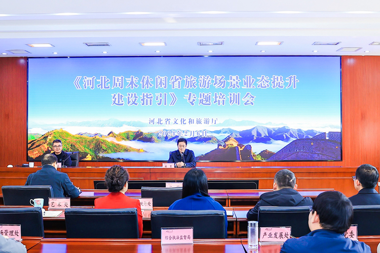 2月6日,省文化和旅游厅组织全省文化和旅游系统召开《河北周末休闲省旅游场景业态提升建设指引》专题培训会,指导各地深入学习《指引》内容。中青旅研究院副院长、中青旅联科首席顾问葛磊受邀现场授课,对省、市、县三级文化和旅游部门进行培训指导,学习吸收“十大周末游场景”和“五大文旅消费业态”内在精髓,掌握创新案例打造思路及实施路径,为打造京津游客周末休闲首选目的地夯实基础。省文化和旅游厅党组成员、副厅长杨军主持并讲话。