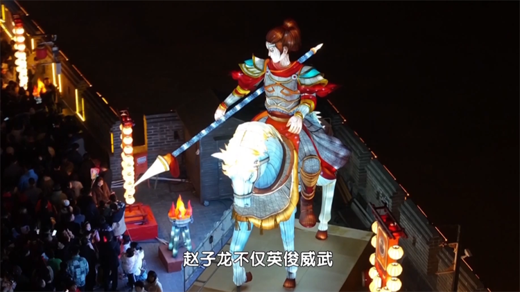 欣赏过演出后,下一站王副厅长带着我们去到了今年春节正定最热闹的地方——“正定古城灯会”。其中一个壮观的花灯足有8米高,展现是一位正定籍的三国名将,常胜将军、完美武将——常山赵子龙。
