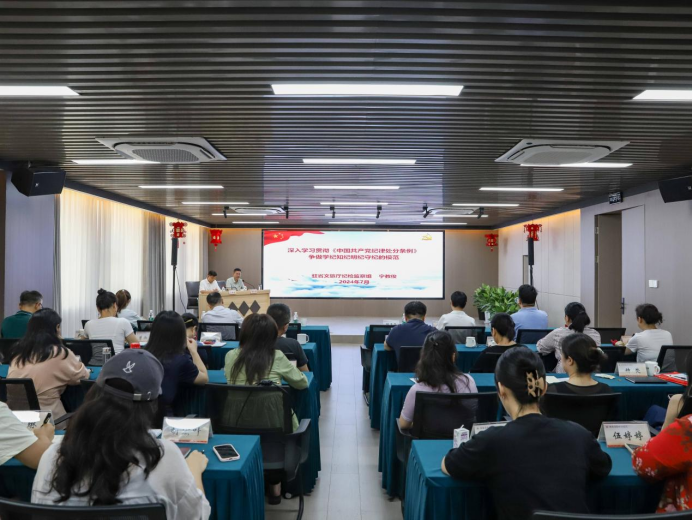 7月12日,省文化和旅游厅党组成员、省纪委省监委驻省文化和旅游厅纪检监察组组长宁教俊以“深入学习贯彻《中国共产党纪律处分条例》争做学纪知纪明纪守纪的模范”为题,为湖南省艺术研究院全体党员、干部讲授专题党课,强调要深入学习贯彻落实习近平总书记关于党的自我革命的重要思想,坚定用党规党纪校正思想和行动,切实做到学纪、知纪、明纪、守纪,为推动湖南文旅高质量发展作出更大贡献。省艺术研究院党总支书记、院长邹清华主持。